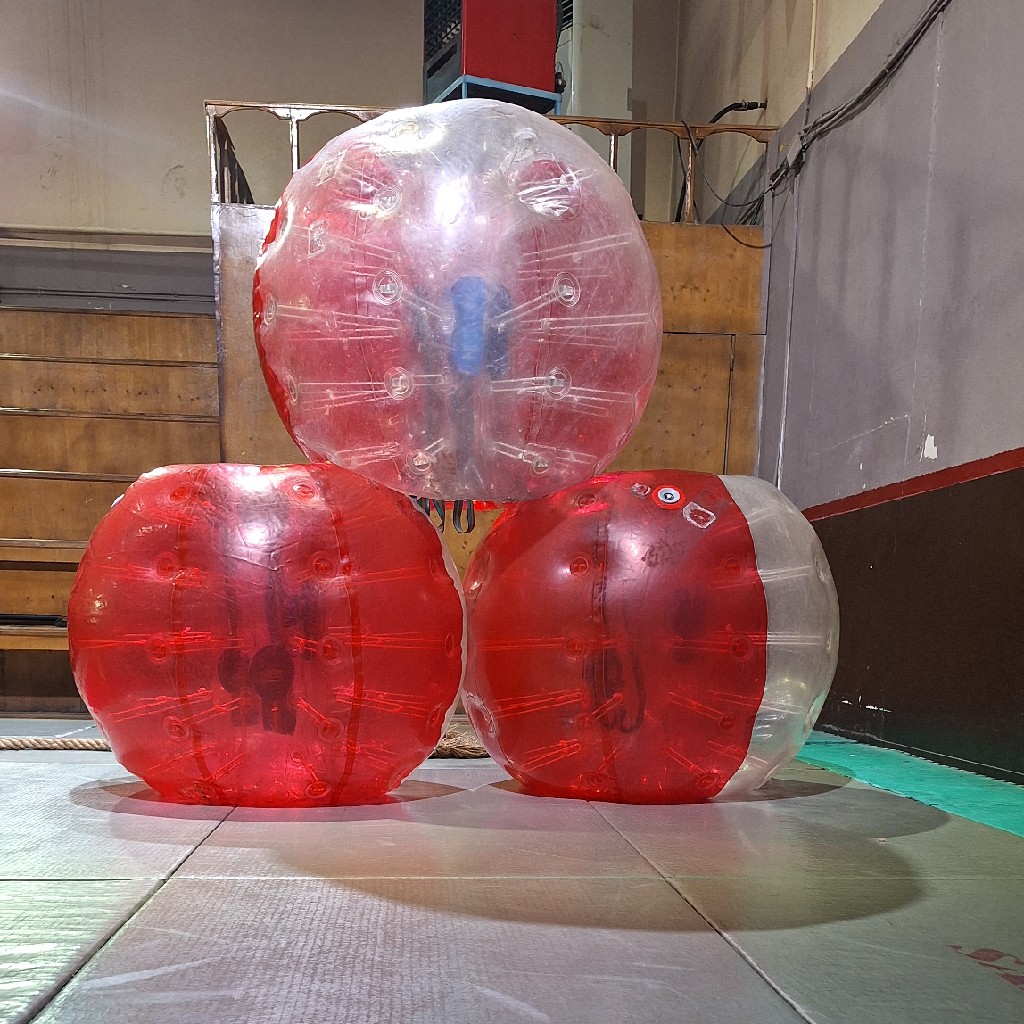 شرکتکنندگان داخل یک حباب شفاف قرار میگیرند و تلاش میکنند بدون زمین خوردن یا چرخیدن، توپ را به سمت دروازه برسانند.